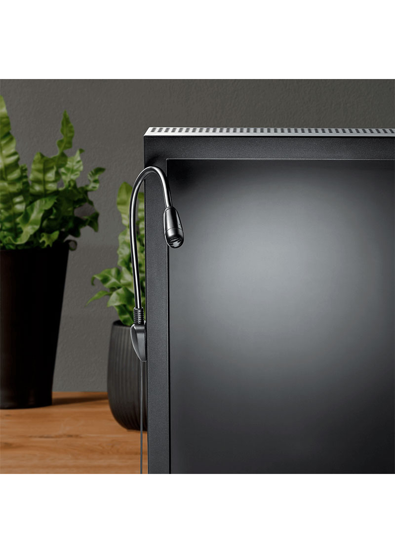 - Cuello flexible que le permite posicionar fácilmente el micrófono