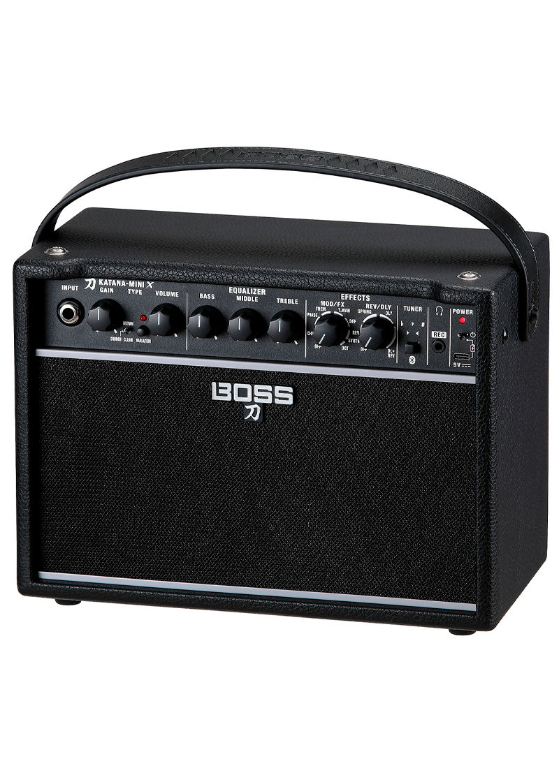 El Boss Katana-Mini X ofrece los aclamados sonidos Katana en un amplificador divertido e inspirador para la práctica diaria y las improvisaciones. Basado en las características del popular Katana-Mini, ofrece seis versátiles opciones de sonido analógico y dos efectos simultáneos, todo ello en un robusto gabinete de madera para una experiencia de guitarra más potente y completa. El Katana-Mini X también ofrece numerosas mejoras para revitalizar tus sesiones de interpretación, incluyendo un afinador integrado, controles en el panel frontal, una batería interna recargable y Bluetooth® integrado para transmitir música desde tu smartphone.