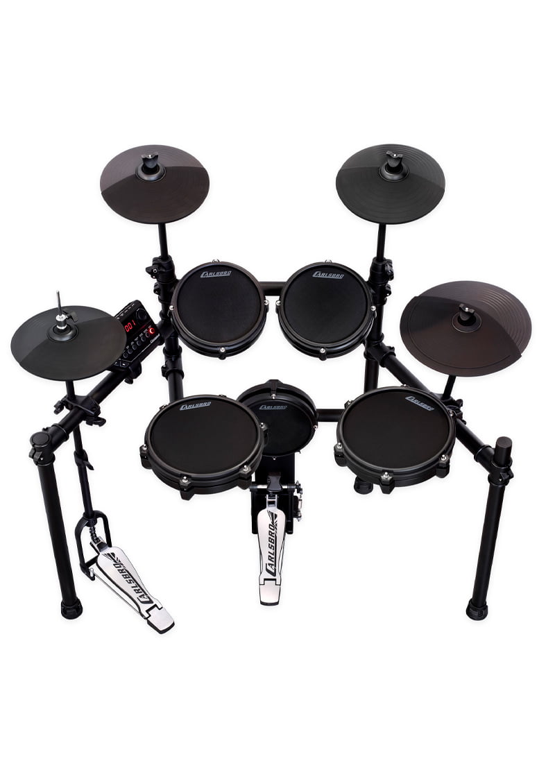 El CSD45M viene de serie con un pad de bajo de malla de 8″ y un pedal de bombo Carlsbro. Único en el CSD45M es el soporte de charles con hardware de apertura/cierre sin patas adjunto al marco que emula la capacidad de ejecución y la sensación de una batería acústica. Su tamaño reducido permite la colocación libre de pedales y pads de contrabajo sin comprometer su postura y comodidad.