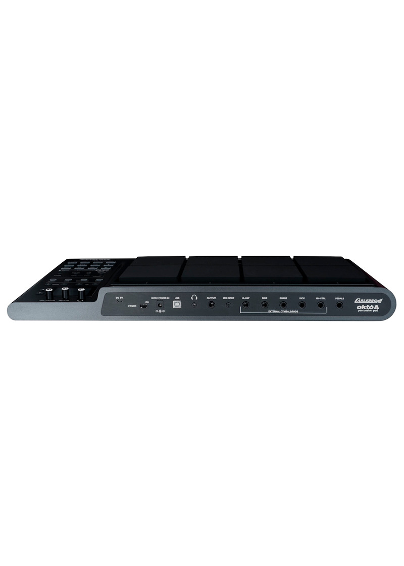 El set de pads de percusión Okto A cuenta con 8 pads de goma de alta respuesta, resistentes y configurables por el usuario. 2 pedales interruptores para controlar el bombo y el hi hat. 408 voces de batería, 30 kits de batería predefinidos, 20 kits de batería de usuario. Funciones de grabación, reproducción, demostración y enseñanza, incluidos los potentes modos de práctica/enseñanza paso a paso de caja, ritmo y batería completa.