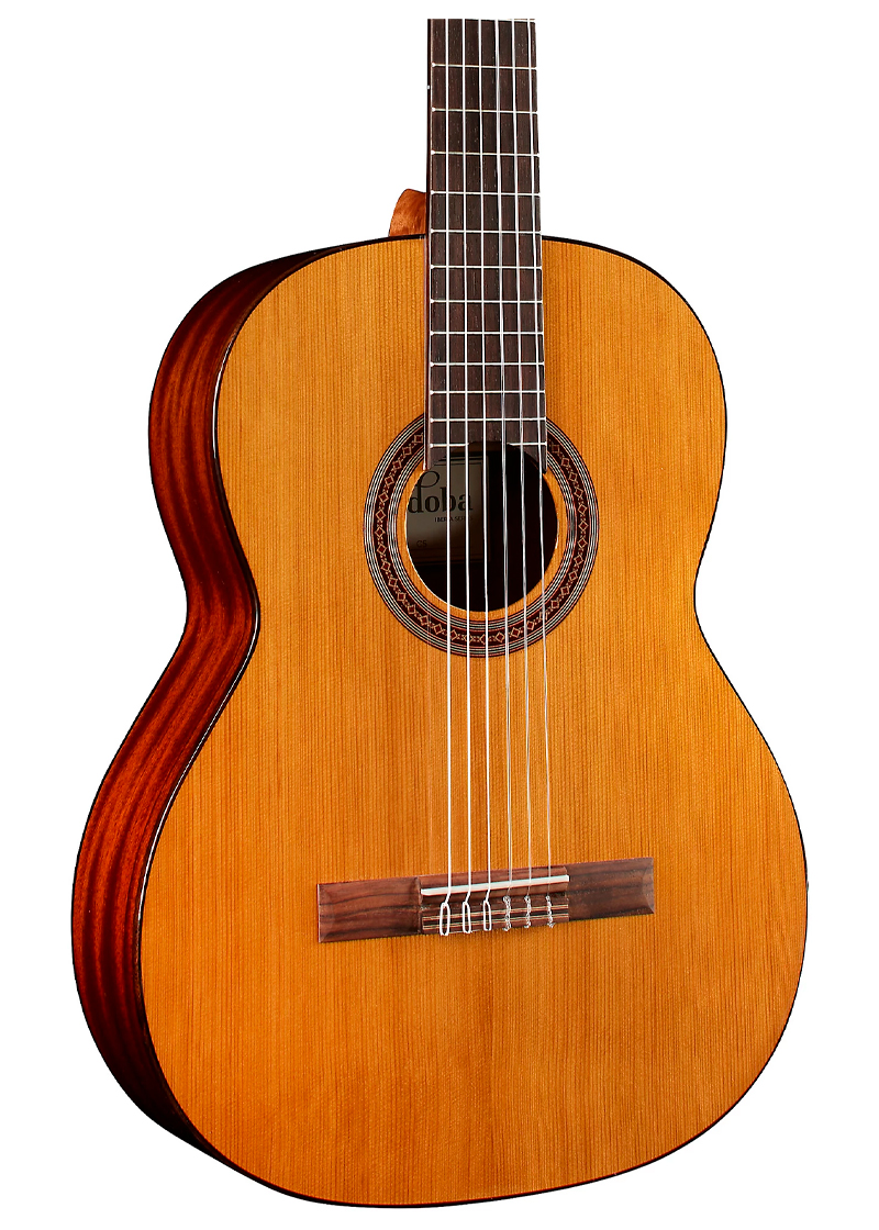 La guitarra acústica C5 es de tamaño completo,con cuerdas de nylon con una tapa maciza de cedro canadiense, caoba en la parte de atrás y los lados y un diapasón de palo de rosa.