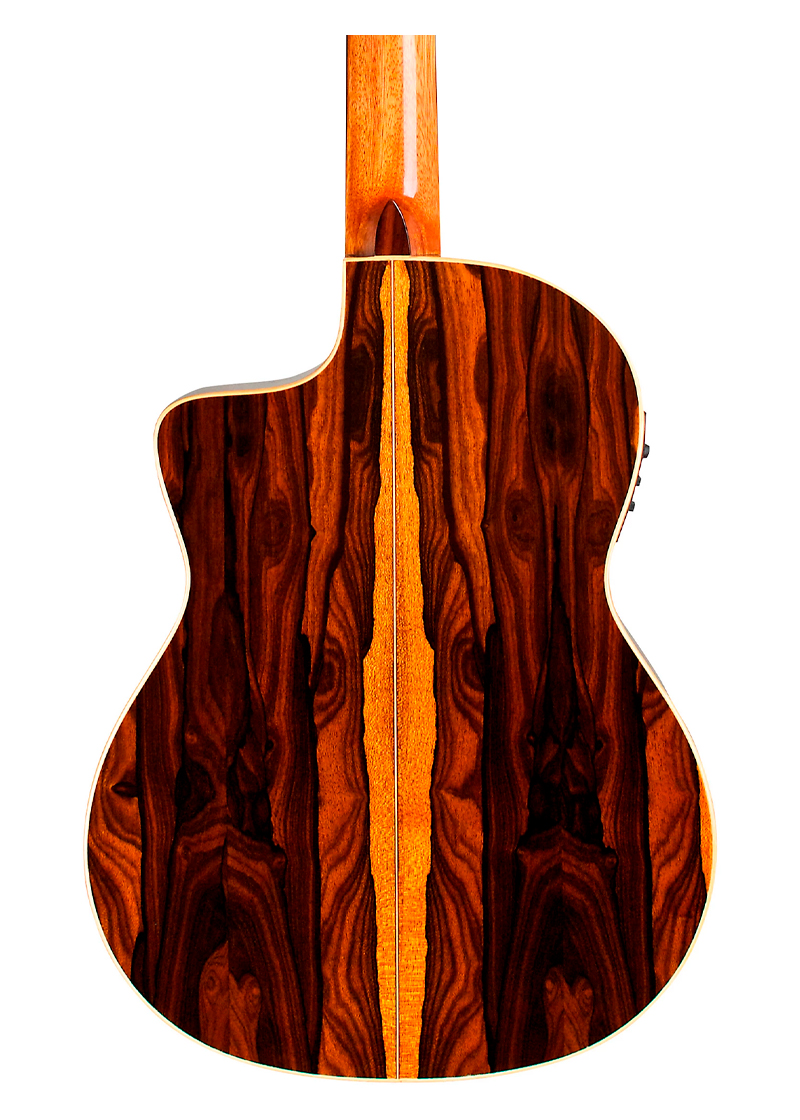 La GK Studio Limited ofrece el dramatismo visual de la madera exótica con la comodidad, la facilidad de ejecución y la electrónica que exige el guitarrista de concierto de hoy.