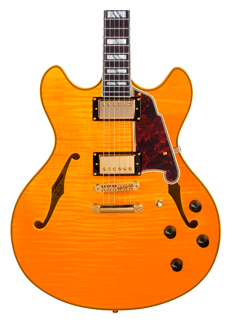 Los humbuckers Seymour Duncan 59 brindan una impresionante gama tonal desde calidez de voz vintage hasta agudos vidriosos, mientras su bloque central combate la retroalimentación a volúmenes altos. Otras características premium incluyen un diapasón de palisandro, un traste Jescar 47104 y afinadores Grover Imperial de inspiración vintage.