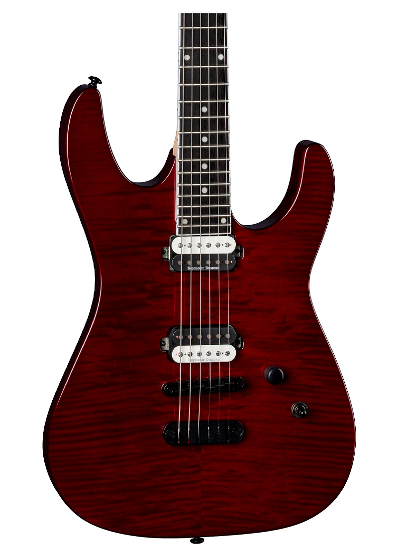 Otras características incluyen impresionantes acabados en las tapas de arce flameado y exclusivas pastillas Direct Mount Seymour Duncan TB5 y APH-1