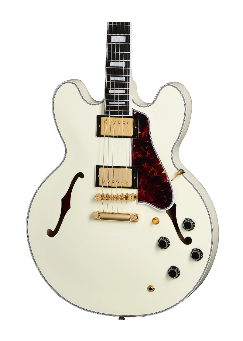 El Epiphone 1959 ES-355 es una impresionante recreación del legendario modelo ES de 1959 que brinda una experiencia sonora como ninguna otra. Con un cuerpo de arce y álamo en capas de cinco capas y un bloque central de arce macizo, el ES-355 de 1959 ofrece una impresionante resistencia al sostenido y a la retroalimentación. Su mástil de caoba de una sola pieza tiene un cómodo perfil redondeado y un diapasón de ébano con elegantes incrustaciones de bloques, que combinan vibraciones vintage con una interpretación moderna.