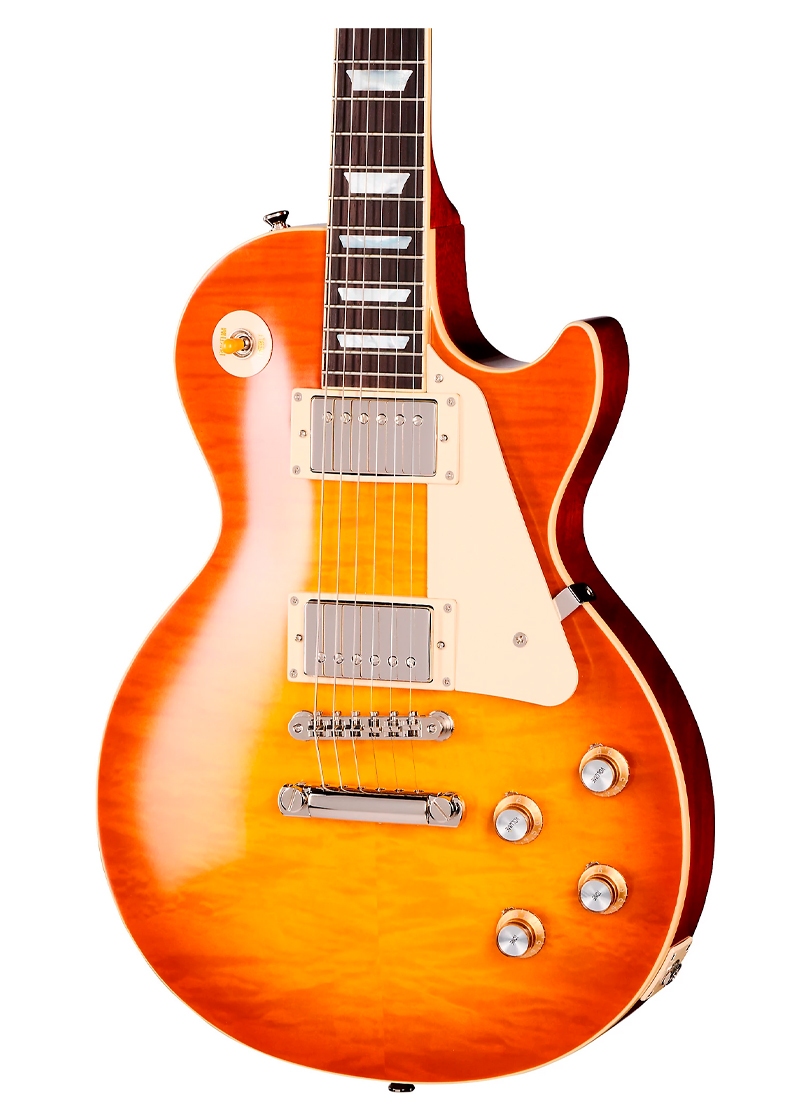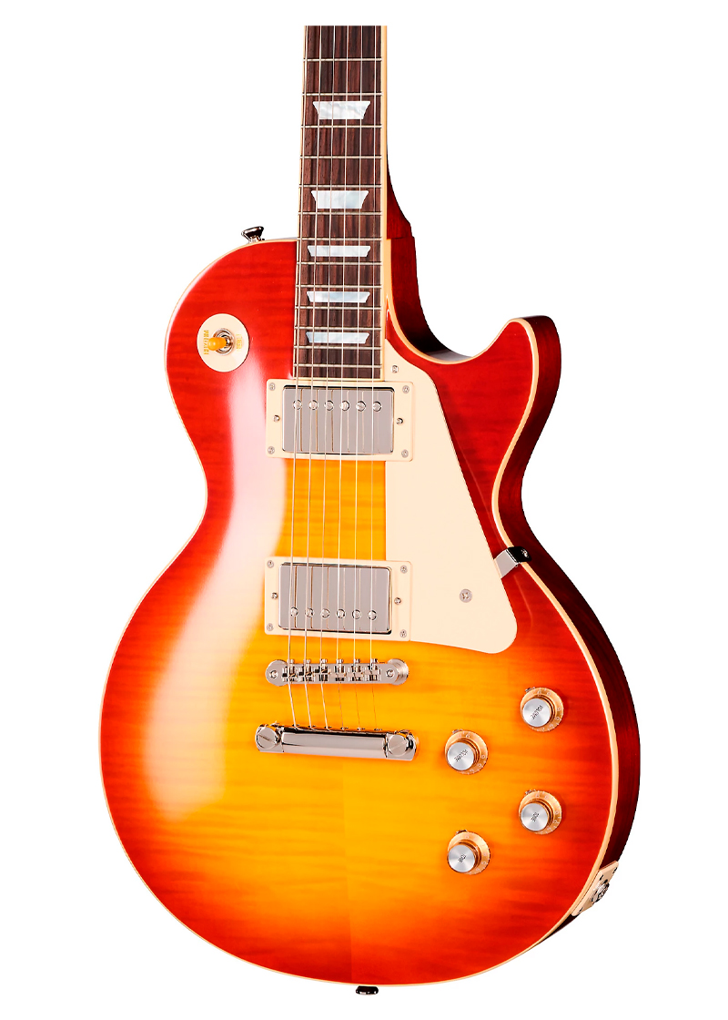 La guitarra eléctrica Epiphone 1960 Les Paul Standard Reissue captura la esencia de uno de los instrumentos más icónicos de la historia de la música. Inspirada en la legendaria Gibson Les Paul Standard de 1960, esta reedición combina la estética vintage con la artesanía moderna para ofrecer un rendimiento inigualable. Con una tapa de arce tallado rematada con una impresionante chapa de arce flameado AAA, su cuerpo de caoba ofrece los tonos cálidos y resonantes que definen el legado de Les Paul. El perfil del mástil SlimTaper proporciona una sensación de ejecución rápida, mientras que el diapasón de palisandro con incrustaciones trapezoidales de nácar añade un toque de elegancia atemporal. Equipada con pastillas Gibson Custombucker, esta guitarra ofrece una rica claridad tonal y una respuesta dinámica, perfecta para músicos que buscan el sonido expresivo de una Les Paul vintage. El estuche rígido incluido con gráficos Inspired by Gibson garantiza un transporte y almacenamiento seguros para esta extraordinaria reedición.