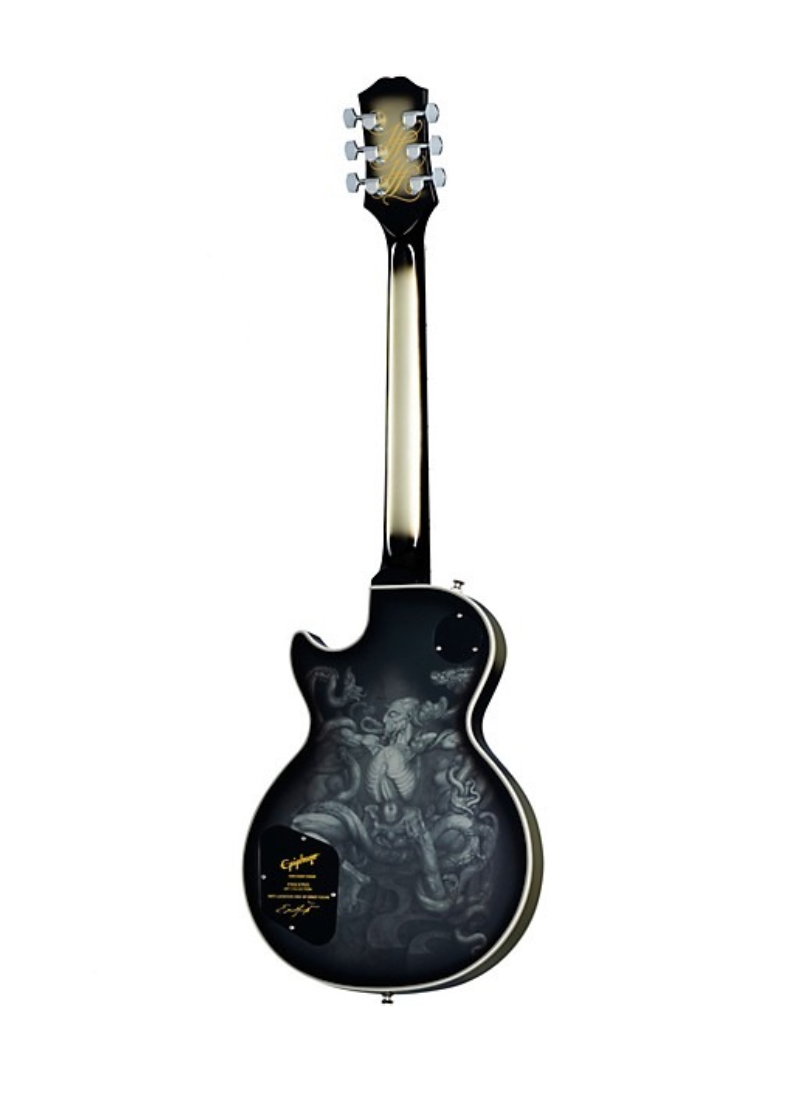 Esta Epiphone Les Paul, de la Adam Jones Les Paul Custom Art Collection, presenta en la parte posterior «Self Portrait as Not Dead Yet» de Julie Heffernan. Tiene un cuerpo de caoba encuadernado con una tapa de arce, un mástil de arce encuadernado de tres piezas con un perfil Adam Jones Custom y un diapasón de ébano. Está equipado con una humbucker Epiphone ProBucker Custom montada al revés en la posición del mástil y una distorsión Seymour Duncan en el puente. Ambos están conectados a potenciómetros CTS y condensadores Orange Drop. También se incluye una placa negra Marquee con el nombre del artista y el nombre de la obra de arte. Tiene un acabado en Antique Silverburst como homenaje a la amada Silverburst 1979 Gibson Les Paul Custom original de Adam Jones.