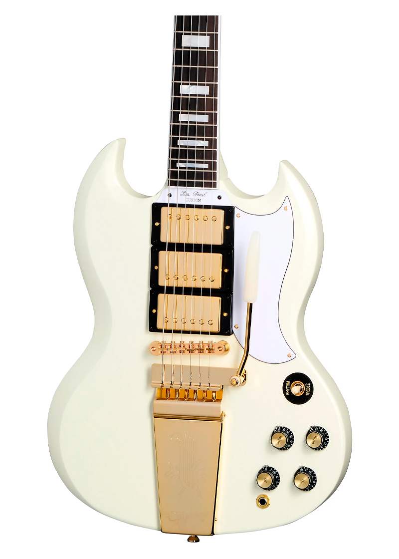 La guitarra eléctrica Epiphone Inspired by Gibson Custom 1963 Les Paul SG Custom con Maestro Vibrola recupera el legendario modelo Gibson SG de 1963, combinando detalles vintage con una ejecución moderna. Fabricada por Epiphone Custom Shop e inspirada en Gibson Custom Shop, esta clásica guitarra eléctrica de cuerpo sólido recrea de manera auténtica el diseño y el tono del original. Con su delgado cuerpo de caoba, cómodo mástil SlimTaper y humbuckers Custombucker, la Epiphone Inspired by Gibson Custom ’63 LP Custom Reissue te brinda un sonido icónico de rock y blues. Su hardware dorado y estilo vintage lo convierten en un instrumento premium que rinde homenaje a la historia de SG.