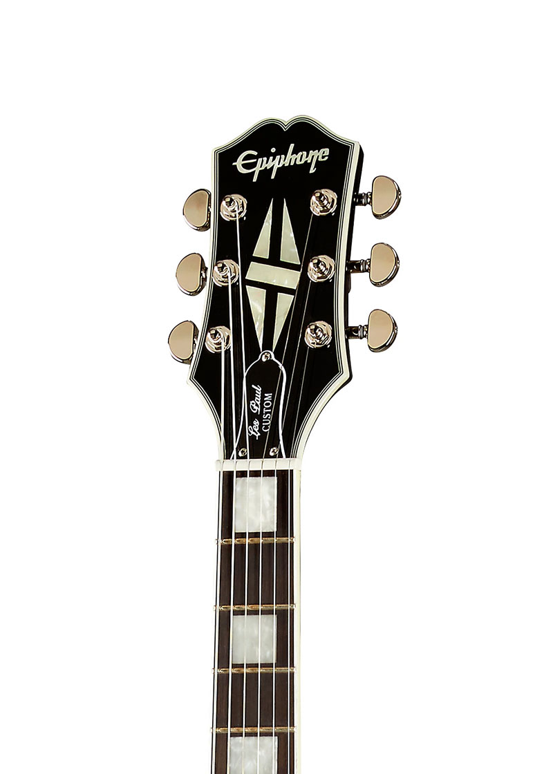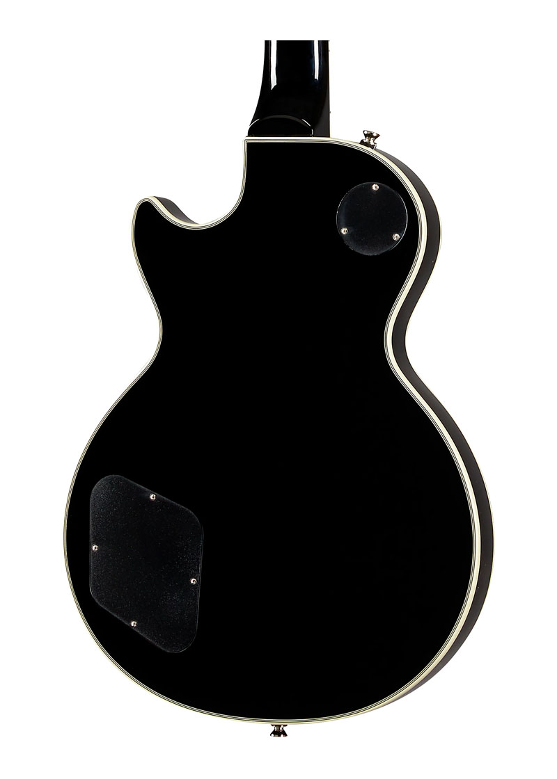 Este Custom tiene el hardware tradicional, pero termina todo (el cordal de la barra de parada, el puente tune-o-matic, las clavijas Grover) en cromo. Los Grover tienen una relación de 18:1 para una afinación precisa y marcada. Las características adicionales de la guitarra eléctrica de edición limitada Epiphone Les Paul Custom incluyen encuadernación de 5 capas, perillas de velocidad y una tuerca GraphTech.