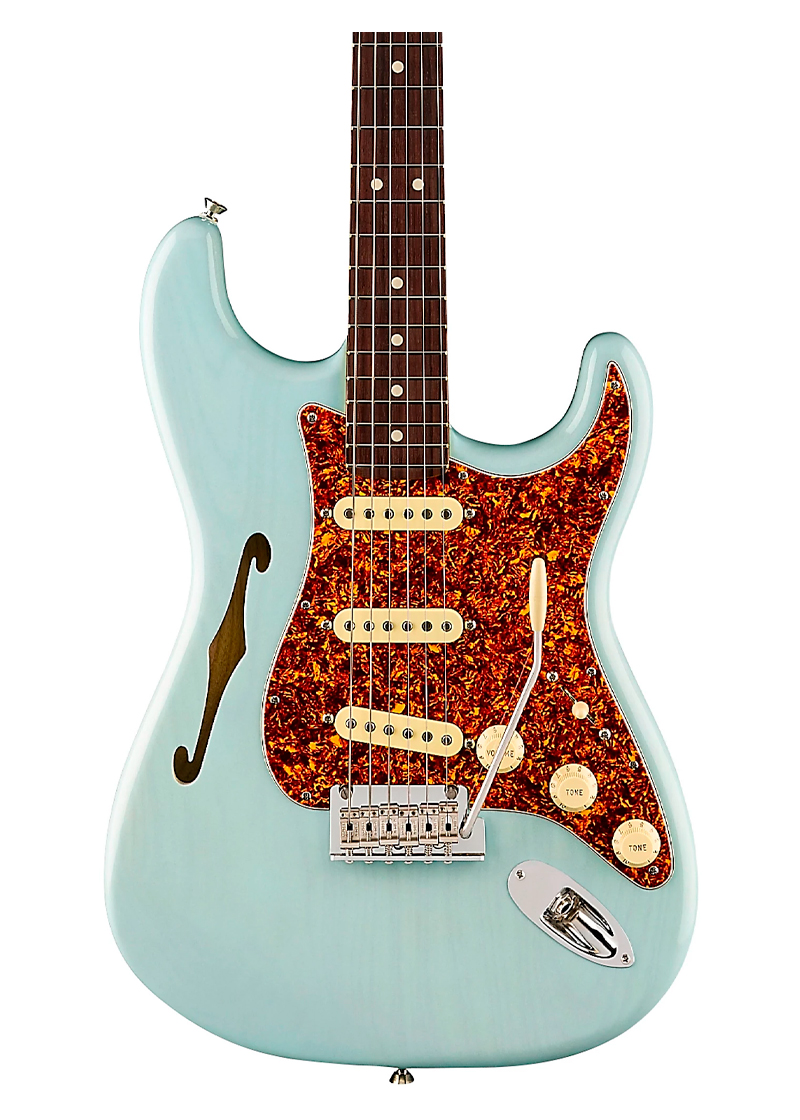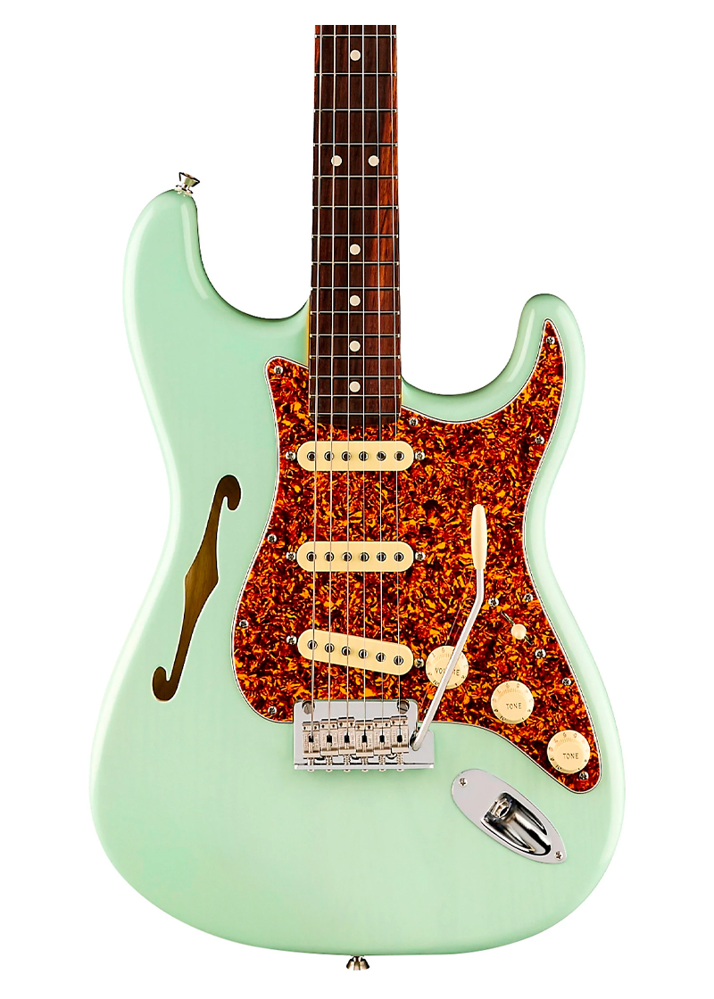 Fender American Professional II Stratocaster Thinline Limited-Edition Electric Guitar en nuestra tienda de instrumentos musicales en Colombia, es una guitarra eléctrica que combina el diseño clásico Stratocaster con una construcción semi-hueca tipo Thinline, ofreciendo mayor resonancia, ligereza y un carácter sonoro distintivo dentro de la línea profesional de Fender.