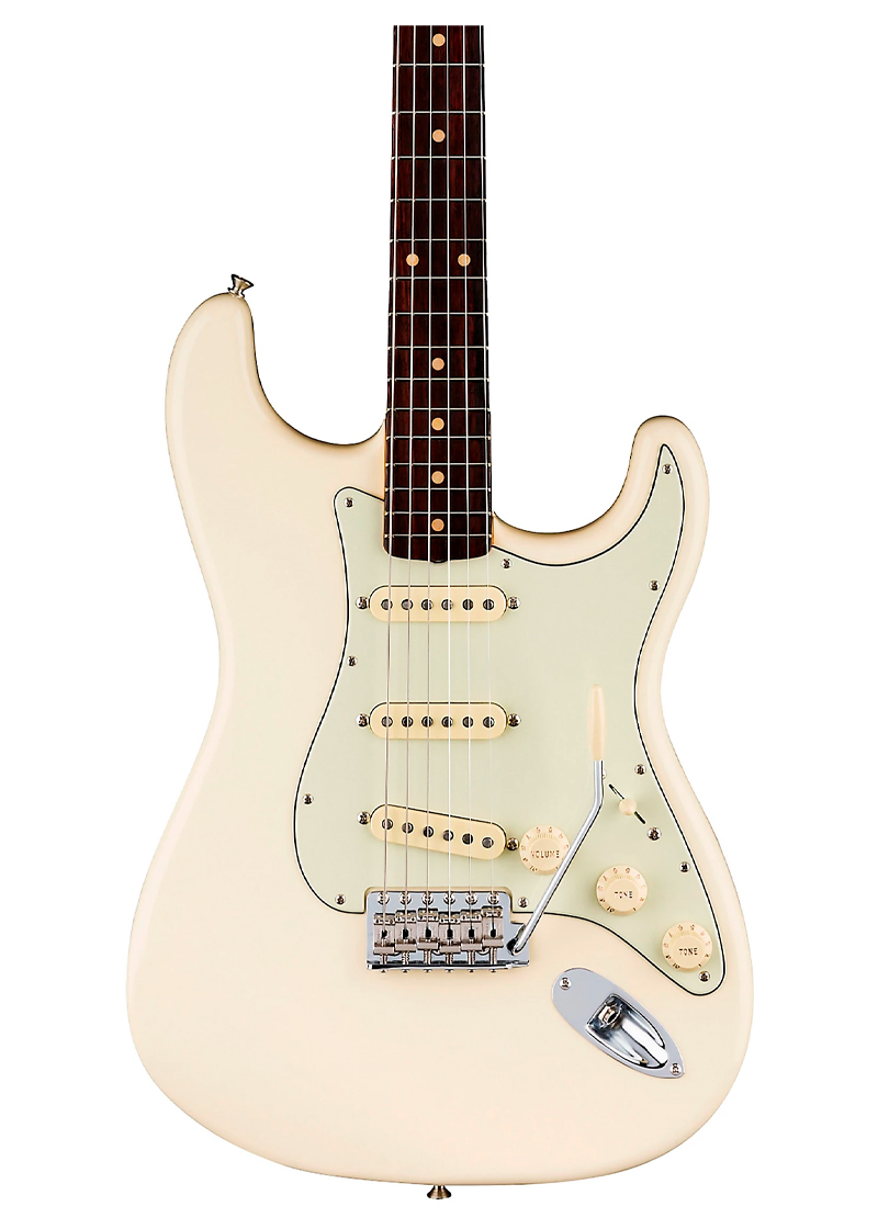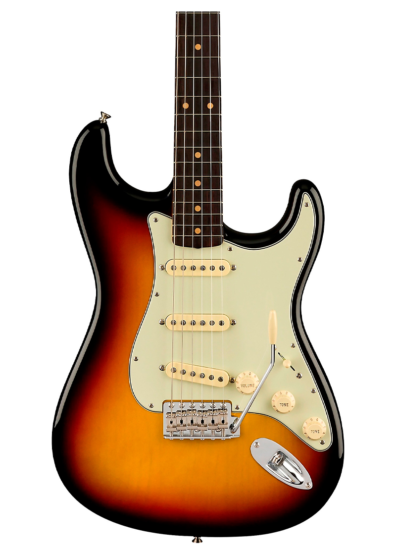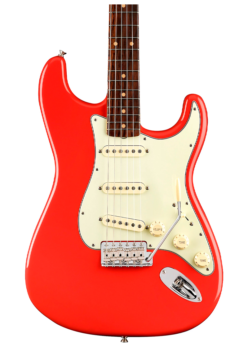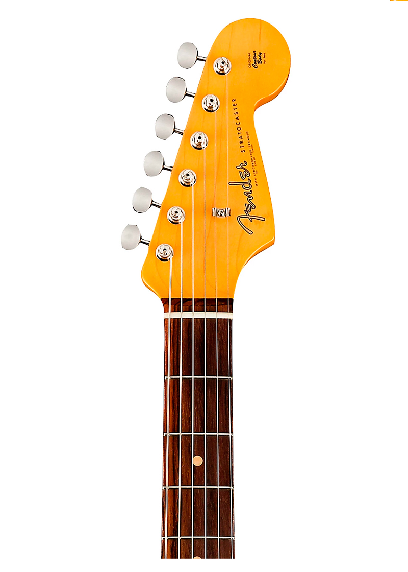 La American Vintage II 1961 Stratocaster te ofrece una auténtica recreación de la icónica guitarra eléctrica que dio forma al rock and roll. El cuerpo de aliso y el acabado brillante de laca de nitrocelulosa proporcionan un sonido pleno y resonante, mientras que un trío de pastillas vintage de la Stratocaster del 61 ofrecen el timbre y la mordida clásicos de una bobina simple que marcaron generaciones de música. El mástil de arce presenta un cómodo perfil en C medio y un diapasón de palisandro con radio de 7,25″ para una sensación rápida y familiar. Un trémolo sincronizado y clavijeros vintage ofrecen una auténtica experiencia de la Stratocaster de 1961 que captura el espíritu de la época dorada de la artesanía de Fender.