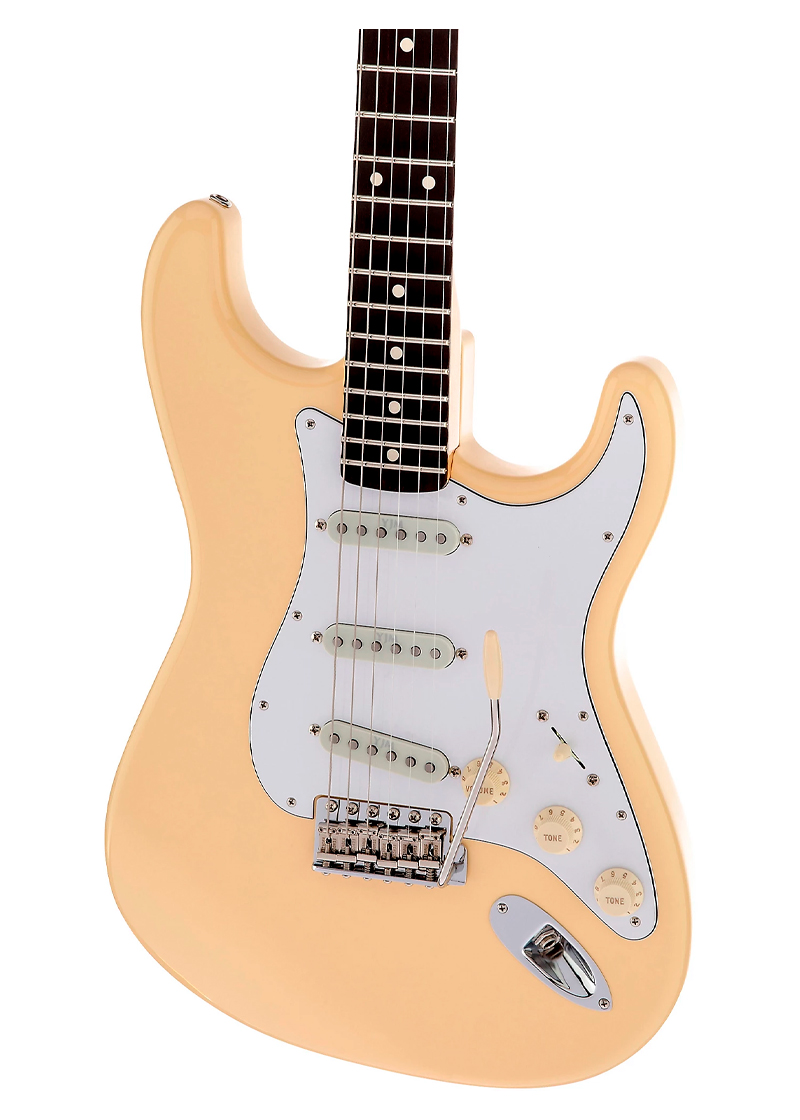 Fender Artist Series Yngwie Malmsteen Stratocaster Electric Guitar Vintage White en nuestra tienda de instrumentos musicales en Colombia, es una guitarra eléctrica signature diseñada para alto desempeño técnico, inspirada en el estilo virtuoso y neoclásico de Yngwie Malmsteen. Este modelo combina estética clásica Stratocaster con especificaciones enfocadas en velocidad, precisión y expresión.