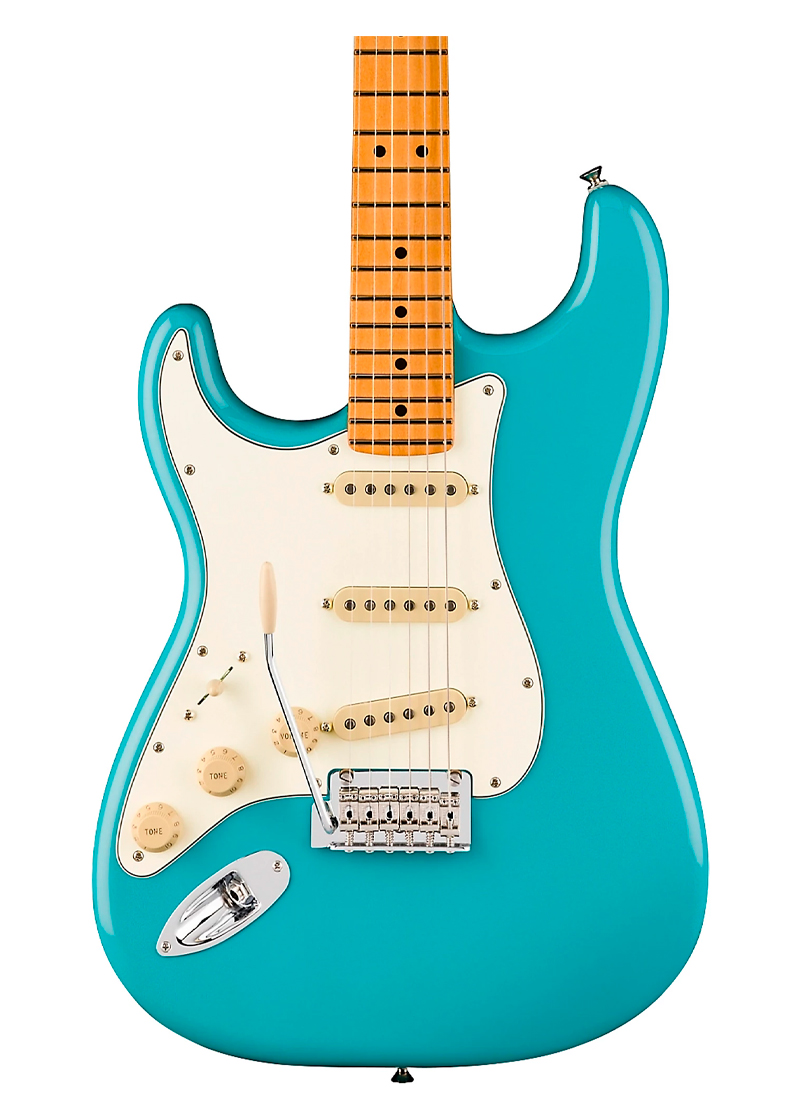 El cómodo mástil de arce en forma de C moderna y el diapasón de palisandro de 22 trastes brindan una experiencia de interpretación suave para casi cualquier estilo. Las características mejoradas, como un puente de trémolo de 2 puntos con acción más suave y una cejuela de hueso sintético, mejoran la ejecución.