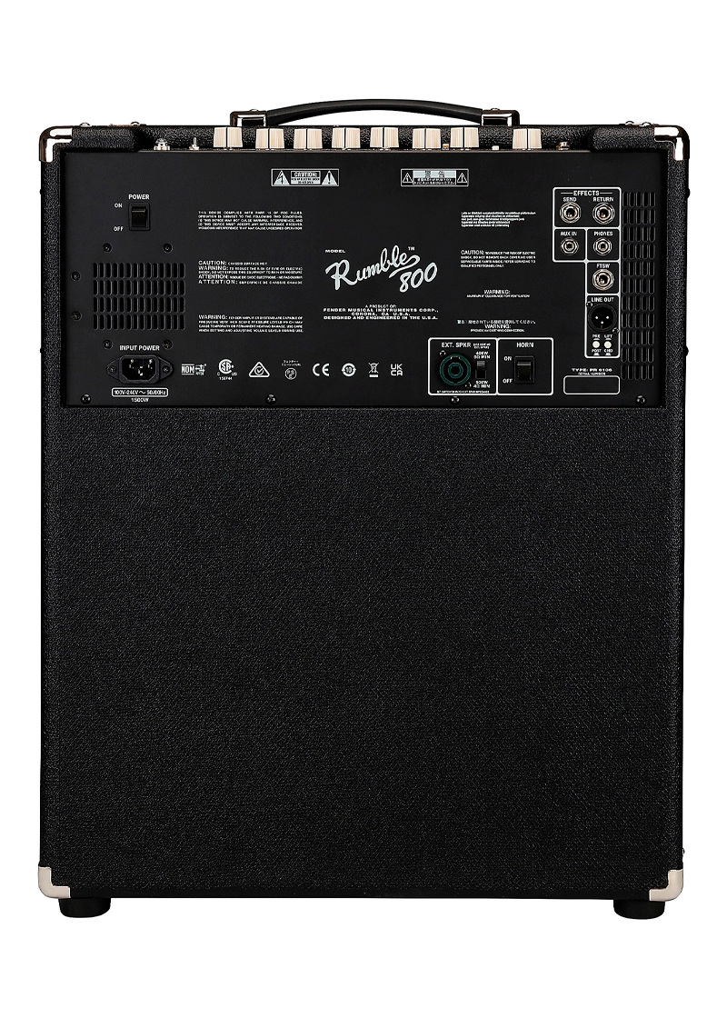 Además de su impresionante potencia y capacidad para modelar el tono, el Rumble 800 incluye funciones útiles para la práctica y la interpretación. El amplificador ofrece una entrada auxiliar, salida de auriculares, salida de línea balanceada y loop de efectos, así como el estilo clásico de Fender con un asa de correa moldeada para transportarlo fácilmente.