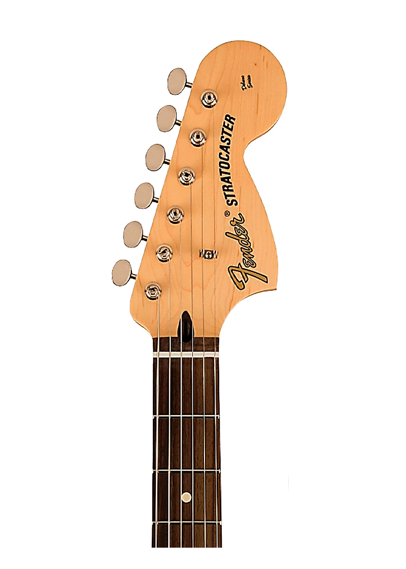 Con su acabado Black clásico y estética limpia, esta Stratocaster transmite fuerza visual y carácter escénico. Es una guitarra pensada para músicos que buscan impacto sonoro y actitud en cada presentación.