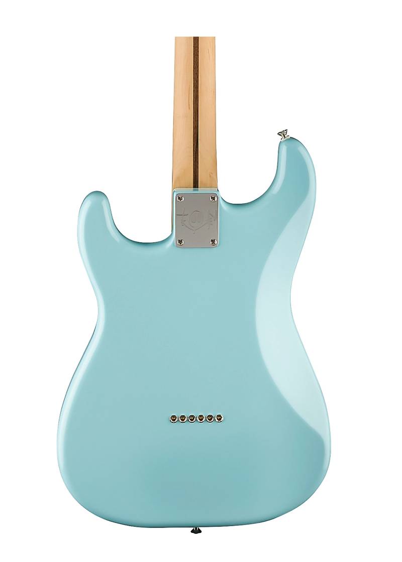 Fender Tom DeLonge Stratocaster Electric Guitar Invader SH8 Pickup Black en nuestra tienda de instrumentos musicales en Colombia, es una guitarra eléctrica diseñada para ofrecer potencia, simplicidad y un sonido contundente. Inspirada en el estilo del guitarrista de Tom DeLonge, este modelo prioriza la energía directa y el rendimiento en vivo.