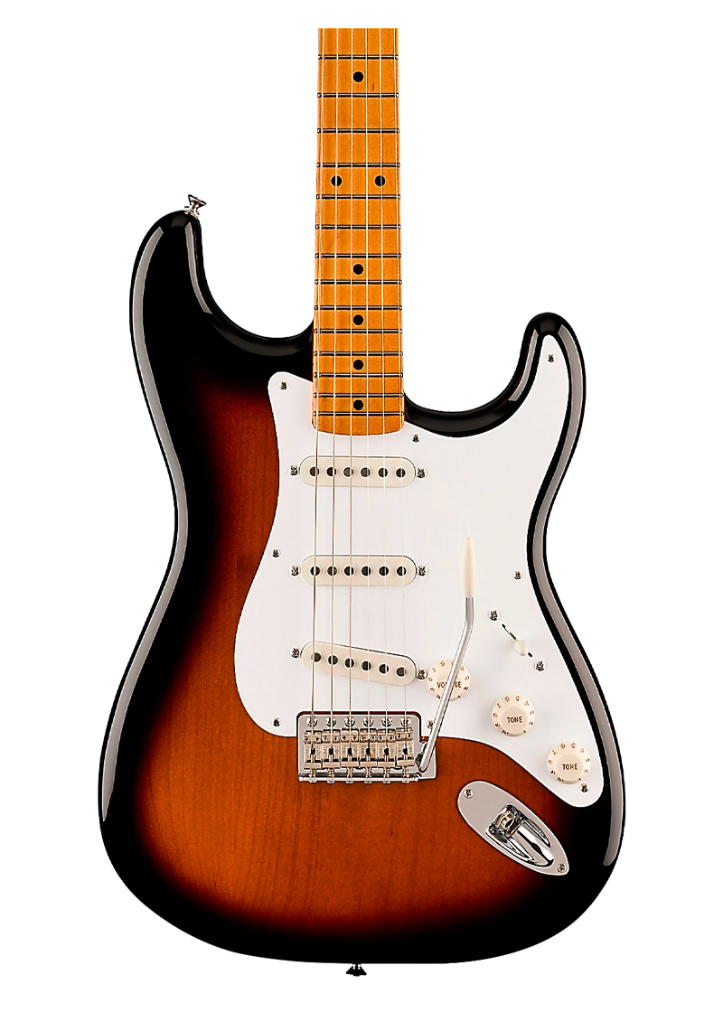Fender Vintera II ’50s Stratocaster Electric Guitar en nuestra tienda de instrumentos musicales en Colombia, es un instrumento inspirado en los modelos originales de la década de 1950, ofreciendo tono brillante, estética clásica y la esencia vintage que marcó el inicio del diseño Stratocaster.
