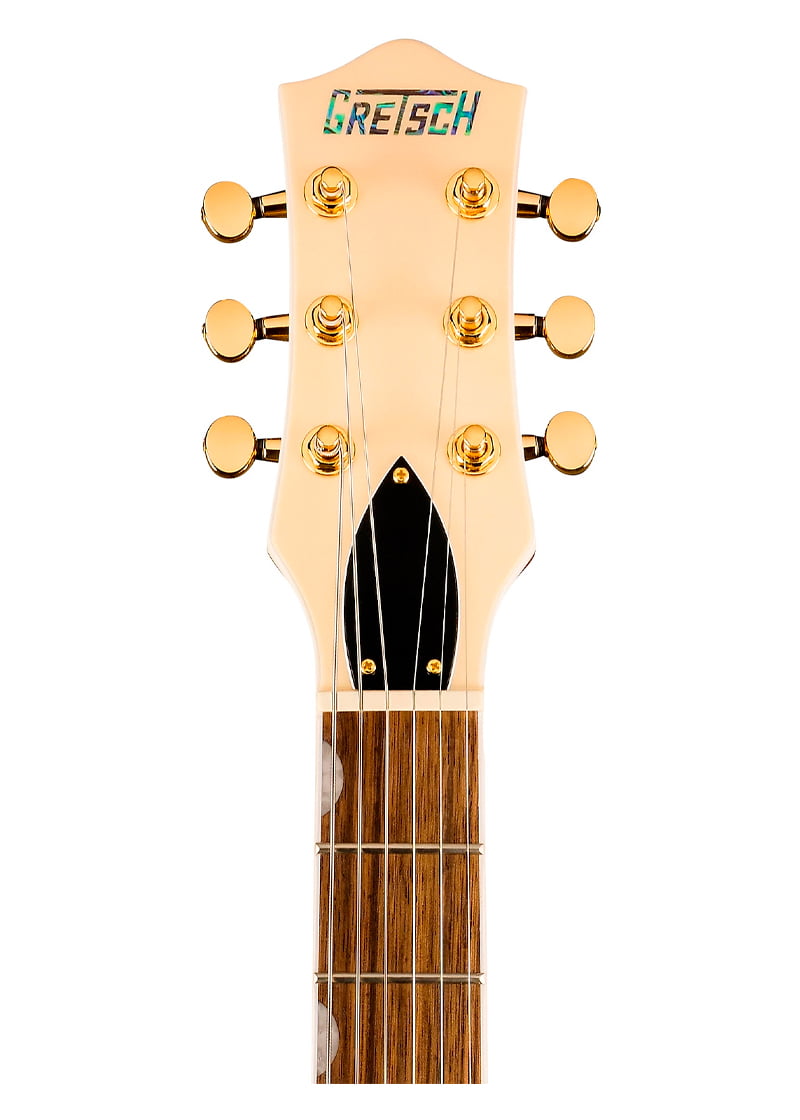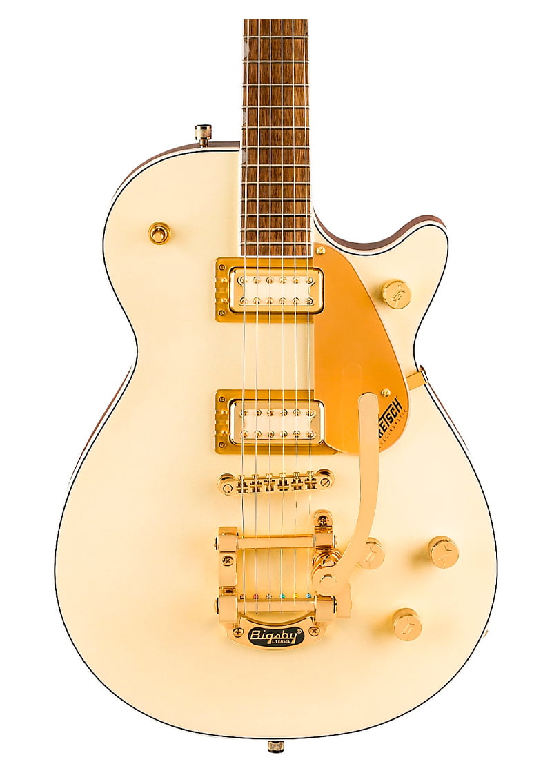 Agregar efectos de vibrato expresivos es fácil con el cordal de vibrato Bigsby B50. Con su elegante acabado de dos tonos y herrajes dorados, la Gretsch Electromatic Pristine Jet seguramente inspirará tu creatividad.