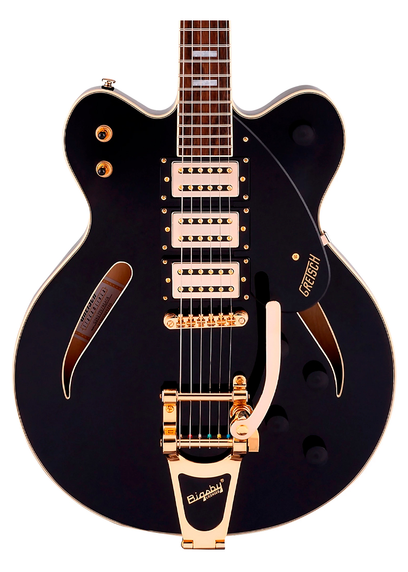 En el corazón del tono del G2627T Streamliner se encuentran tres pastillas humbucking Broad’Tron. Estas pastillas proporcionan graves ajustados, agudos nítidos y un rango medio gutural para el inconfundible sonido Gretsch con creces. Un bloque central de abeto refuerza la tapa de arce al tiempo que elimina la retroalimentación no deseada, incluso con ajustes de ganancia y volumen altos, para un tono que atraviesa las mezclas de bandas ruidosas.