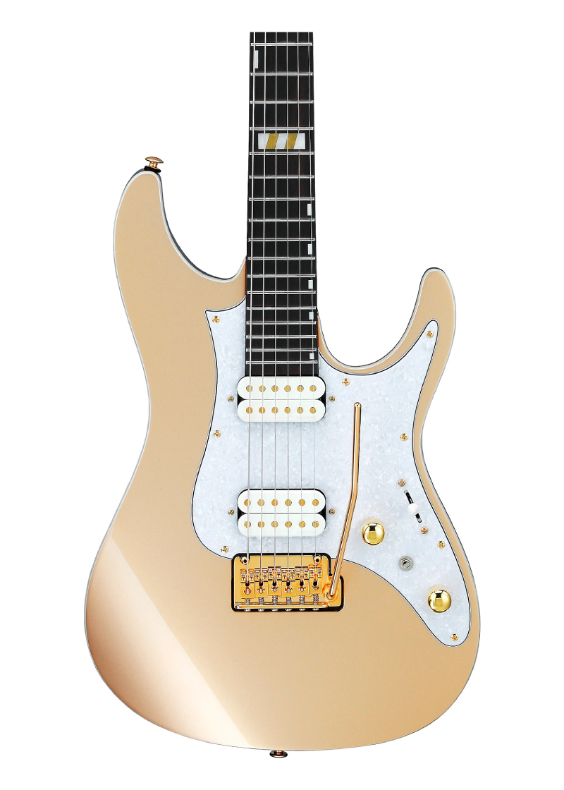 La Scott LePage Signature eléctrica de Ibanez es la guitarra característica de la mitad del dúo dinámico de guitarras Polyphia. La guitarra está muy inspirada en el modelo Ibanez AZ y también presenta algunos de los toques personales de Scott para que esté perfectamente diseñada para su estilo de interpretación versátil. El Scott LePage eléctrico está construido con un cuerpo de fresno para un brillo agradable y un rico sostenido, combinado con un mástil de arce tostado y un diapasón de ébano para lograr graves y medios ajustados junto con un ataque fuerte. Las pastillas humbucker Fishman Fluence Scott LePage Custom Series abarcan toda la gama desde tonos agresivos y rítmicos hasta combinaciones vintage de bobina simple. Los clavijeros con bloqueo Gotoh MG-T logran una increíble estabilidad de afinación, reduciendo el tiempo de cambio de cuerdas, mientras que un puente de trémolo T1502 con selletas de acero y un bloque de trémolo de zinc fundido permiten una respuesta rápida y una articulación mejorada. El espacio entre cuerdas de 10,5 mm permite tocar fácilmente las cuerdas y su construcción a presión facilita la carga de un brazo de trémolo. También se incluye una funda protectora.