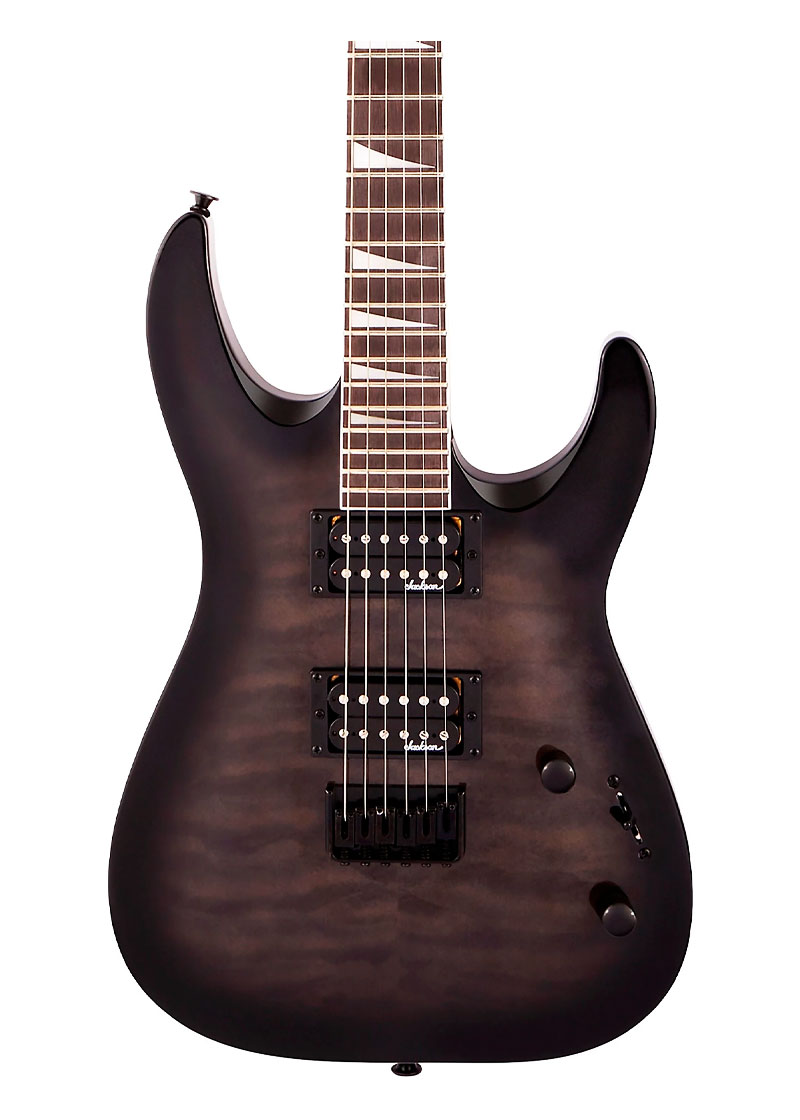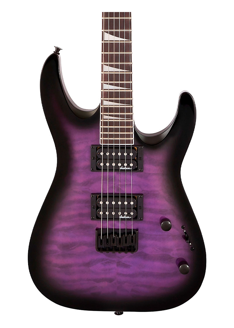 Alimentado por dos pastillas humbucking Jackson e alto rendimiento de montaje directo con imanes de cerámica, la JS32Q DKA HT también cuenta con un interruptor 3 posiciones, un puente rígido de cuerdas a través del cuerpo Jackson HT6 y clavijas fundidas a presión.
