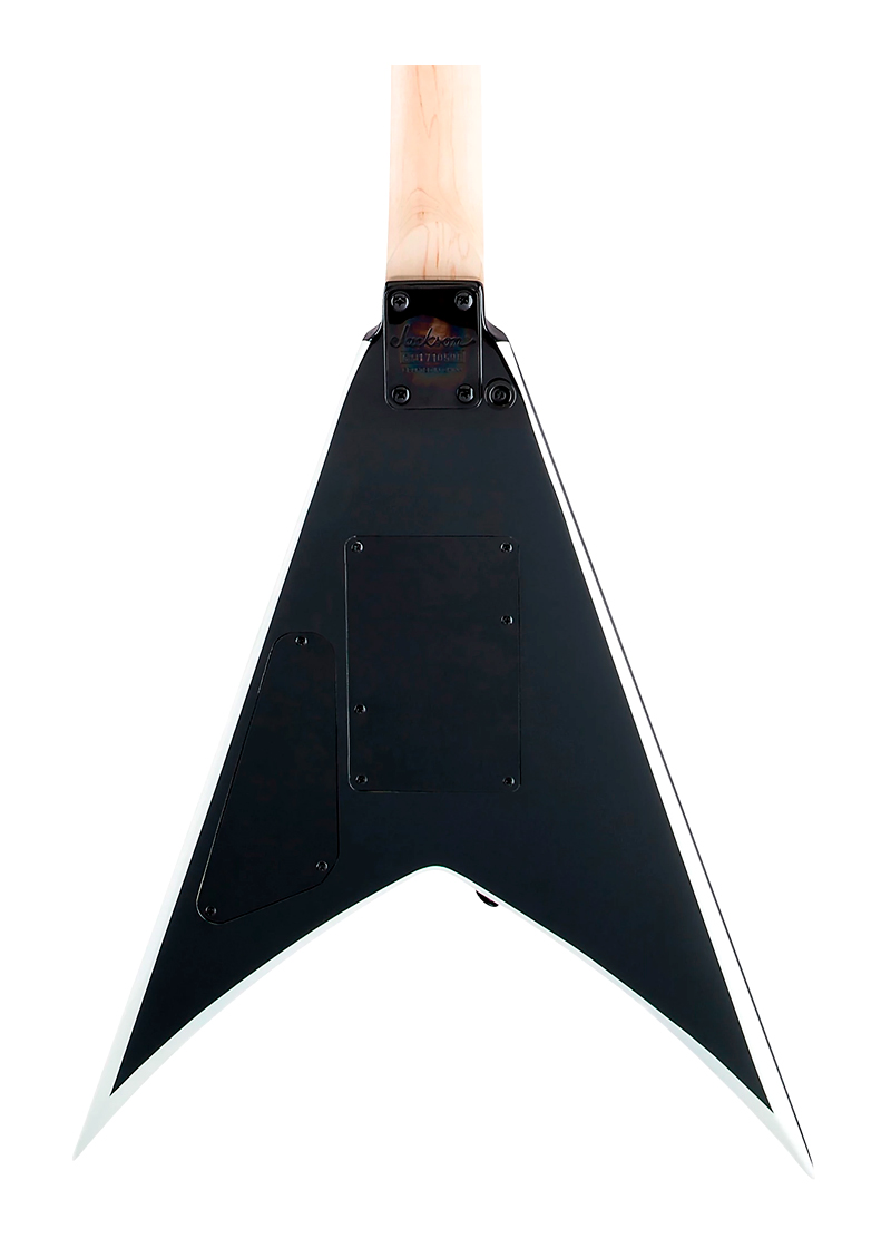 Otras características incluyen dos pastillas humbucking Jackson de alto rendimiento con imanes cerámicos y conmutador de palanca de tres vías, puente de trémolo de doble bloqueo con licencia Floyd Rose® de la marca Jackson, botones de correa estándar y sintonizadores de fundición sellados
