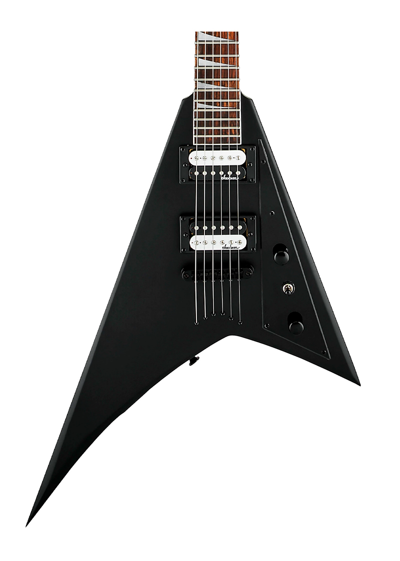 Otras características incluyen pastillas dobles humbuckers Jackson de alto rendimiento con imanes de cerámica y conmutación de tres vías, puente compensado de cuerda ajustable, herrajes negros y clavijas fundidas a presión.