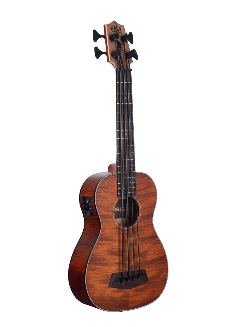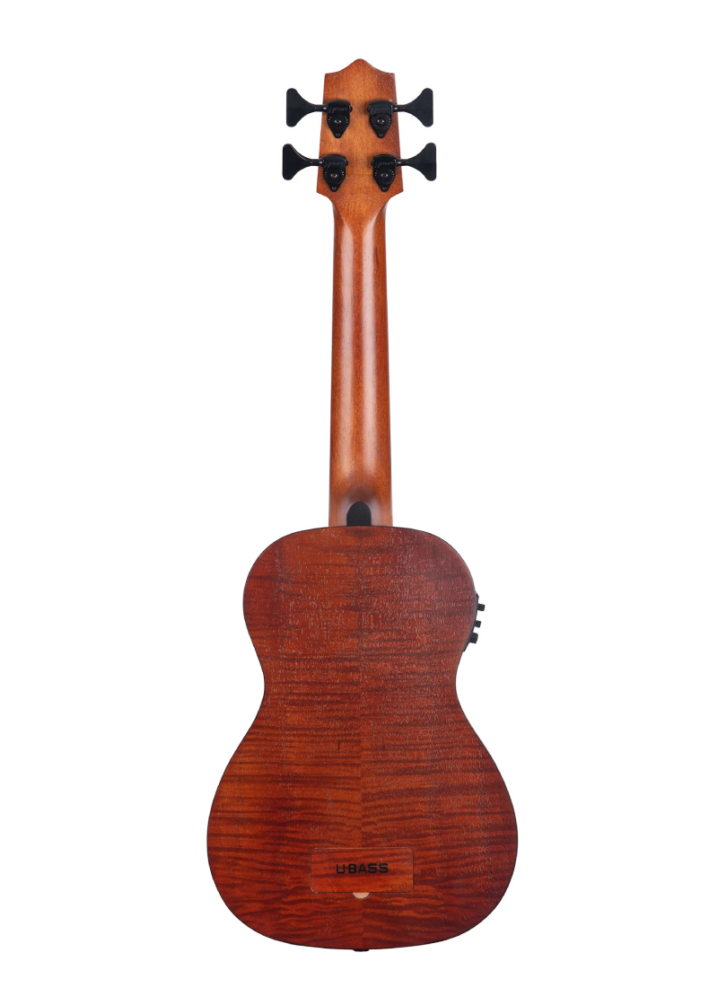 El U-Bass de caoba exótica de Kala es un instrumento elaborado meticulosamente que ofrece maderas finas que producen un sonido sorprendentemente cálido y rico del que te enamorarás al instante. La escala de 21″ te permite moverte sin esfuerzo hacia arriba y hacia abajo por el diapasón de 16 trastes. El exclusivo color naranja y marrón, acentuado por la reconocible figura de «rayas de tigre» de la caoba exótica, proporciona el carácter visual perfecto para combinar con los graves resonantes y el tono distintivo del contrabajo del U•BASS. Otras características de calidad incluyen fondo, aros y mástil de caoba exótica, diapasón y puente de palisandro, cuerdas de goma patentadas, clavijas de fundición personalizadas, incrustaciones personalizadas del logotipo de Kala y Road Toad y un sistema electrónico Kala con un ecualizador activo y un afinador incorporado.