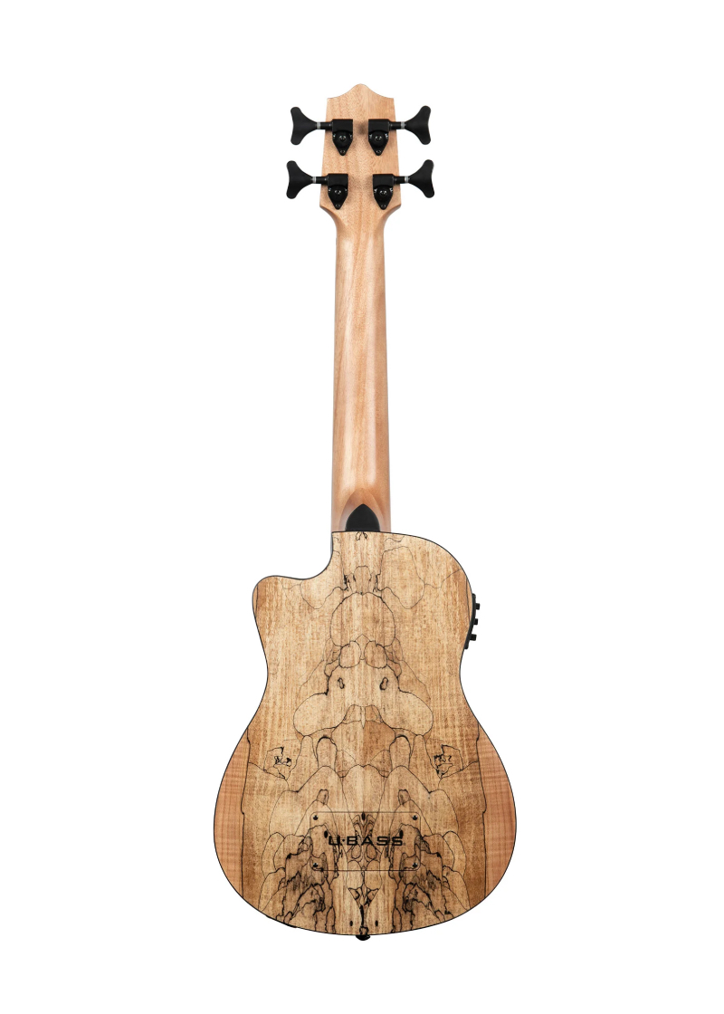 El U•BASS de arce spalted de Kala tiene un spalting en la madera que se asemeja a garabatos hechos con un bolígrafo de punta fina que forman líneas y vetas negras onduladas que contrastan hermosamente con el arce de dos tonos de color más claro. El ribete negro agrega un lindo complemento y se combina con el spalting. Este U•BASS ofrece un gran rango dinámico, claridad, graves ajustados y amplio sustain.