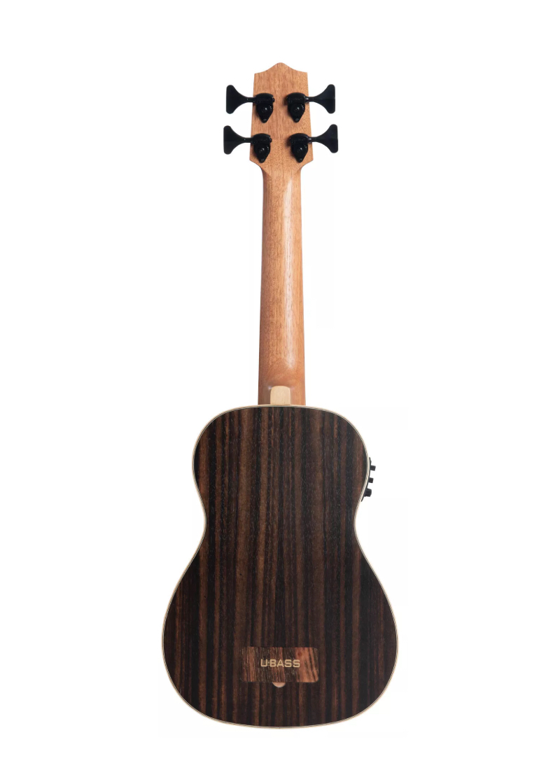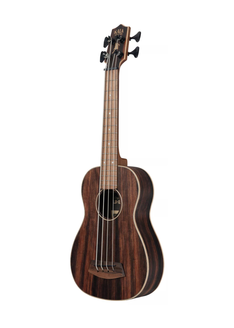 El bajo acústico-eléctrico de ébano rayado de Kala presenta rayas impresionantes en toda su superficie que lo convierten en un instrumento elegante. El ébano es una madera de alta densidad que posee cualidades tonales superiores, mientras que el ribete de arce claro crea un contraste sorprendente que hace que las variantes se destaquen.