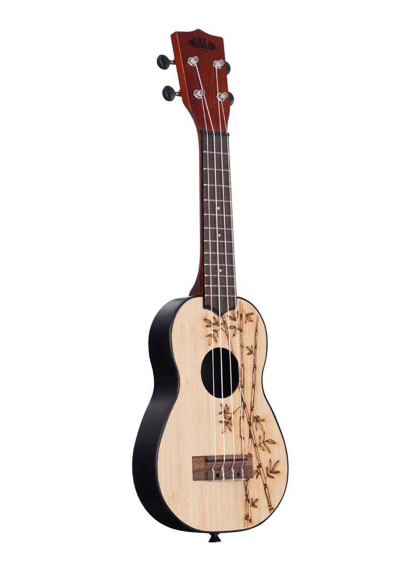 El ukelele soprano Kala Ukadelic combina la madera tradicional del ukelele con la durabilidad del plástico. Cada tapa de madera maciza de Ukadelic tiene un diseño original grabado con láser con una parte posterior de plástico arqueada que crea una proyección de sonido impresionante. Este ukelele no es tímido: le gusta ir a todos lados. Es robusto y resistente, tíralo en la parte trasera del auto y llévalo a la playa o al bosque donde se puede escuchar su gran sonido.