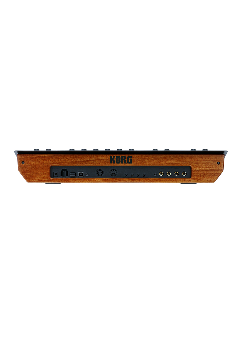 - Conectores de Entrada/Salida: Toma de auriculares (estéreo jack) / OUTPUT L/MONO, R (monaural jack no-balanceado) / CV IN 1, CV IN 2 (3.5 mm [1/8″] monoaural mini jack, Voltaje de entrada: -5 V – +5 V (Modo Modulación), -3V – +5 V (CV/Modo Gate) / SYNC IN (3.5 mm [1/8″] mini jack, nivel máximo de entrada 20 V) / SYNC OUT (3.5 mm [1/8″] mini jack, nivel de salida 5 V) / MIDI IN / MIDI OUT / USB B / DAMPER jack (no soporta medio pedal).