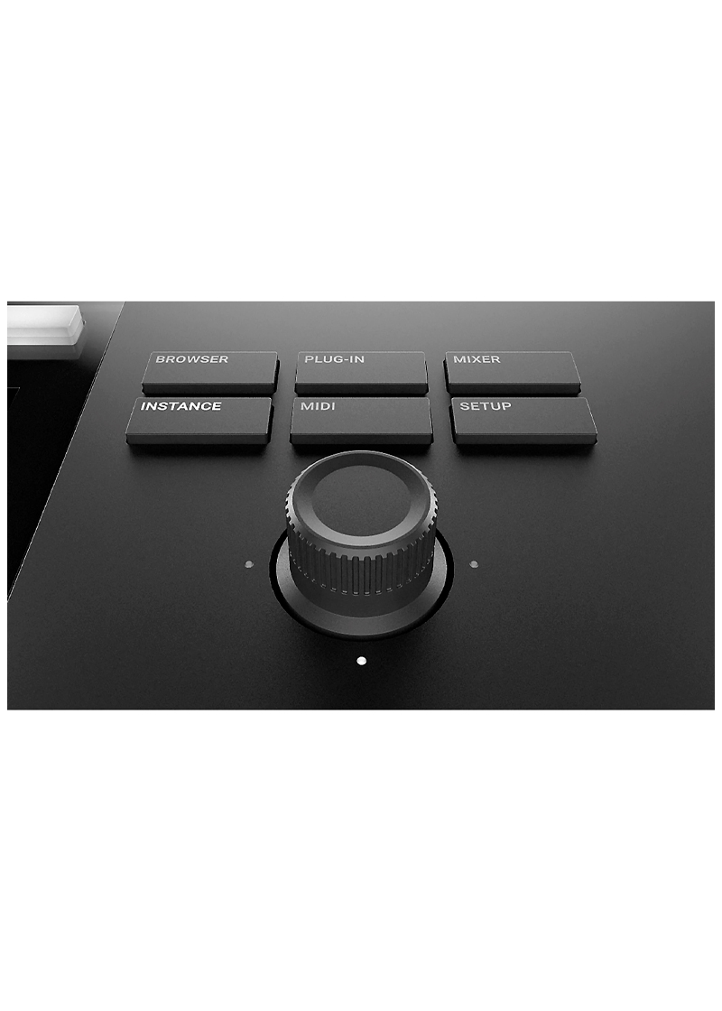 • Rueda pulsable con cruceta para explorar sonidos y navegar por el proyecto con una mano