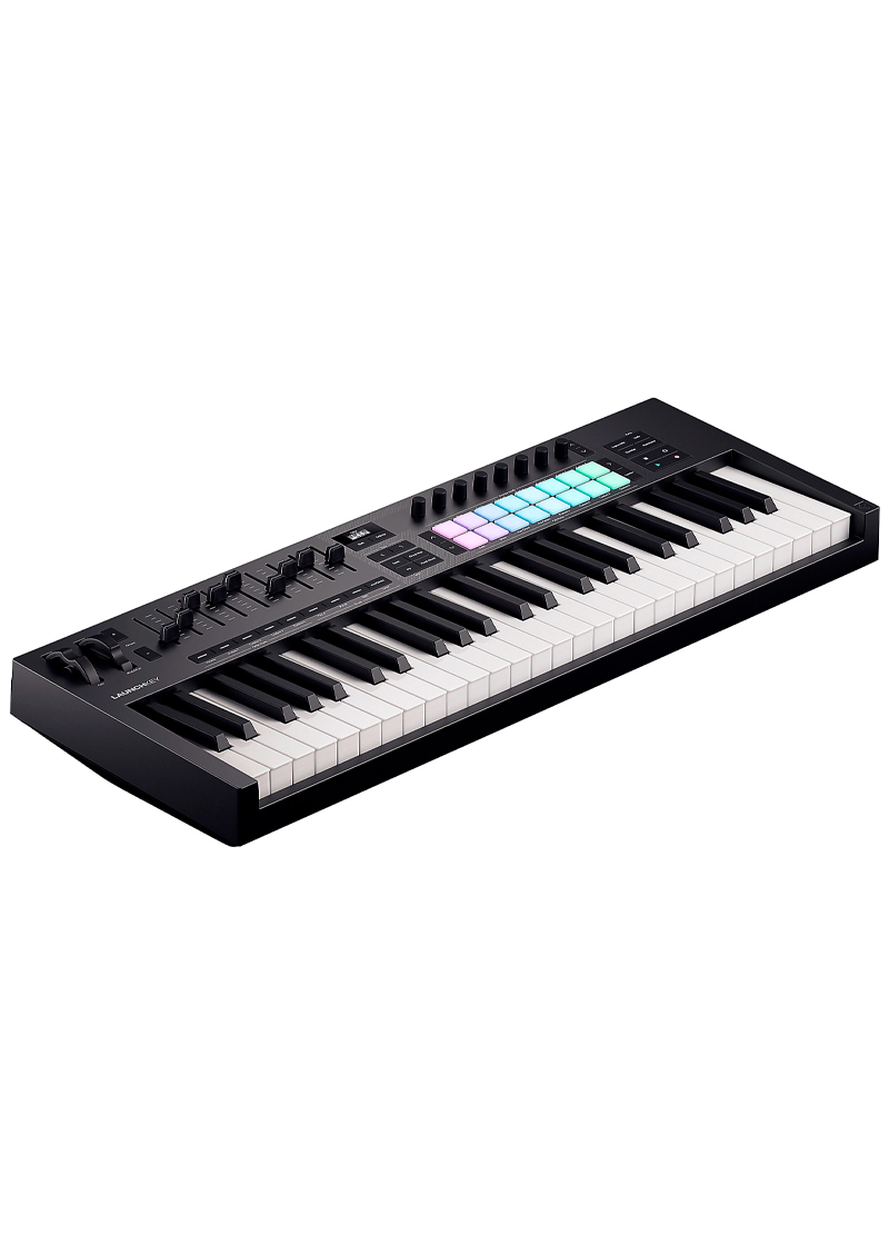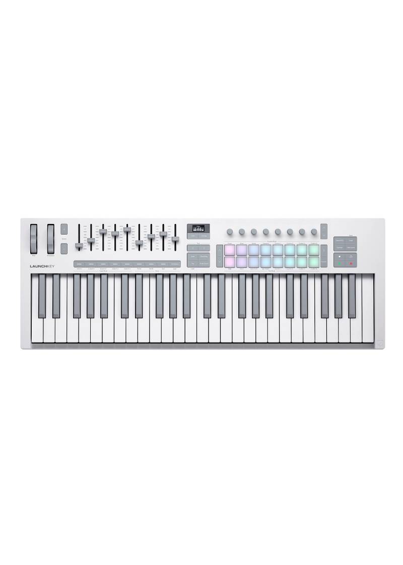 El teclado controlador Novation Launchkey 49 MK4 te ofrece un control intuitivo sobre tu DAW e instrumentos virtuales. Este completo controlador MIDI cuenta con 49 teclas semicontrapesadas, 16 pads sensibles a la velocidad y ocho codificadores rotatorios: todo lo que necesitas para componer, grabar e interpretar.