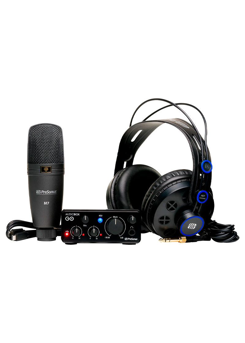 El paquete de grabación PreSonus AudioBox GO Creator te ofrece una solución completa y compacta para grabar en alta calidad dondequiera que estés. Este paquete incluye una interfaz de audio USB-C 2×2 ultraportátil, auriculares de monitorización con calidad de estudio, un micrófono de condensador versátil y acceso a software de grabación profesional. Tendrás todo lo que necesitas para capturar tu creatividad cuando te llegue la inspiración.