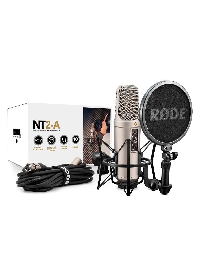 Suministrado con el soporte de choque SM6, cubierta antipolvo, cable de micrófono y video instructivo descargable presentado por el ingeniero y productor nominado por Grammy, John Merchant, que muestra una gama de técnicas de grabación específicas para el NT2-A .