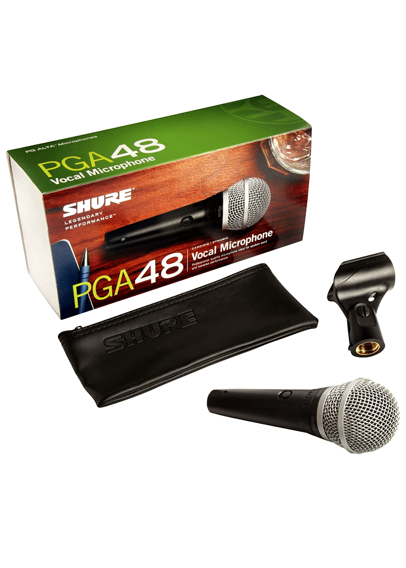 - Opciones disponibles: – PGA48-XLR Micrófono vocal cardioide dinámico para discursos y aplicaciones vocales. Cable XLR-XLR.