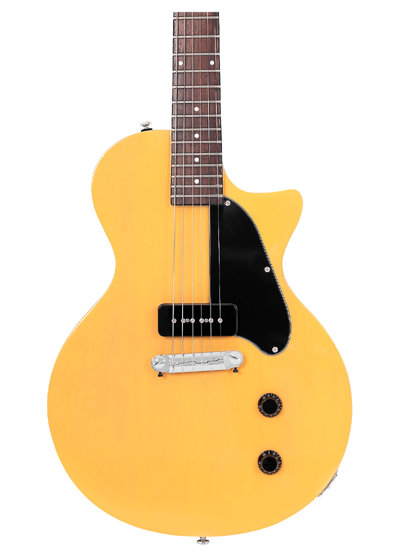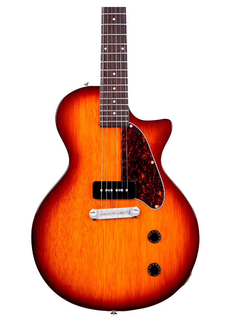 Una elegante guitarra estilo años 50 con una pastilla P90 diseñada para una ejecución fácil, común en instrumentos de gama alta. Con un cuerpo ligero y un mástil diseñado para la comodidad, este nuevo modelo es ideal para músicos aventureros.