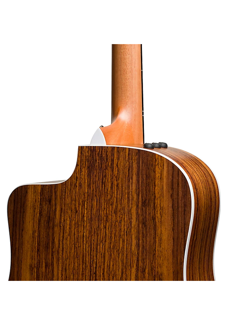La parte posterior y los lados de palisandro en capas ofrecen un tono robusto de palisandro al tiempo que crean una plataforma sólida y complementaria para la energía de las cuerdas vibrantes enviadas por la parte superior de la guitarra.