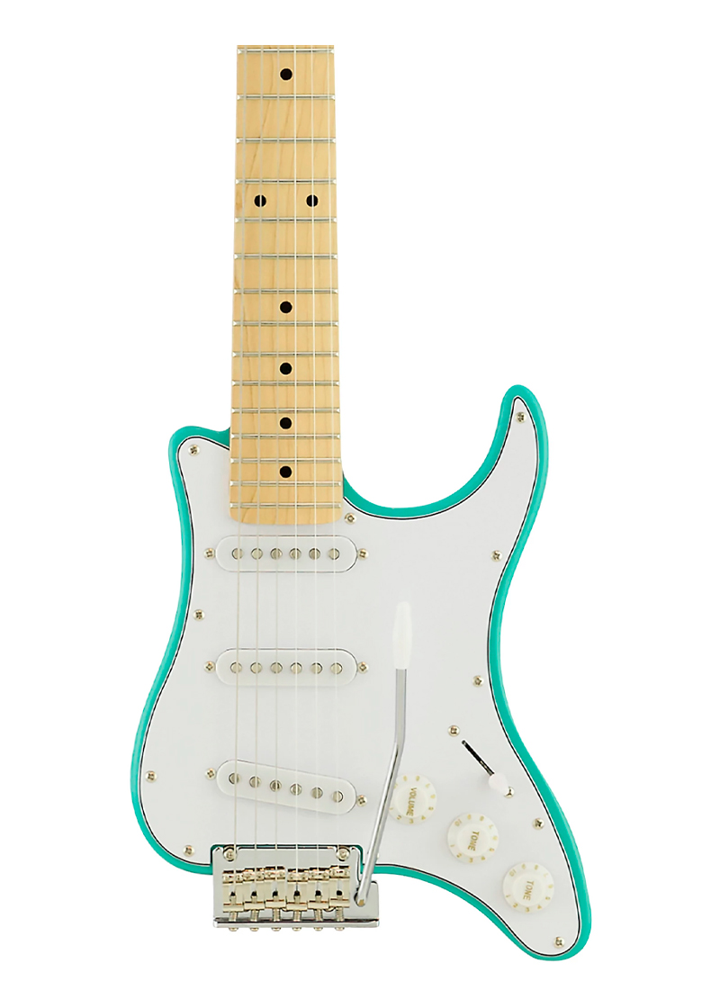 La Travelcaster también cuenta con características de guitarra tradicionales como 22 trastes medio jumbo, cuerpo de álamo y un mástil de arce.