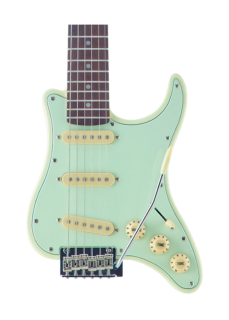 Con solo 5 lb. y una longitud total de 33,75 pulgadas, la Travelcaster enfatiza la portabilidad sin sacrificar el sonido.